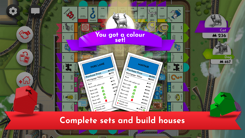 The gameplay of is relatively simple and challenging. Players will perform a series of operations such as throwing dice, moving pieces, buying property, trading and collecting rent in order to build their real estate empire. At the beginning of the game, the player determines the starting position by rolling two dices. The player then moves pieces based on the outcome of the dice, with the option to purchase either passed or landed properties. Each property has a different price and rent. When a player has ownership of a property, other players are required to pay the corresponding rent to the property owner when they stay overnight on the property. The player can also increase the rental income of the property by building houses and hotels. In addition to collecting rent, players can also participate in transactions, purchase other players' properties, or acquire more wealth through leasing, mortgage, auction, etc.